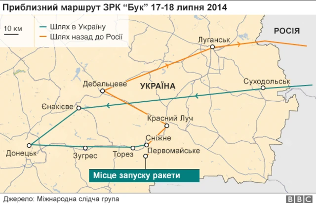 За даними слідства, ракета була випущена з установки, що розміщувалась поруч з населеним пунктом Сніжне, яке на той момент контролювали проросійські бойовики. Російська влада назвала оприлюднені результати попередніми і запропонували дочекатися "остаточної правди".