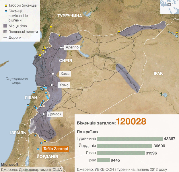 У самій Сирії, як вважають, понад мільйон людей залишили свої помешкання і перемістилися у інші регіони країни, а 2,5 мільйонів людей потребують гуманітарної допомоги.