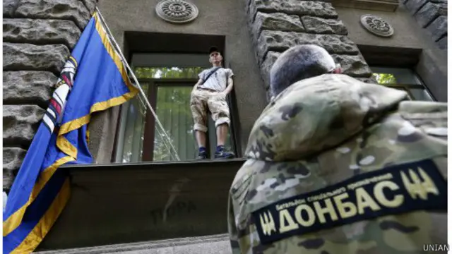 Тим часом у Києві представники добровольчих батальйонів вимагають під Адміністрацією президента припинити перемир'я і запровадити на сході країни військовий стан.