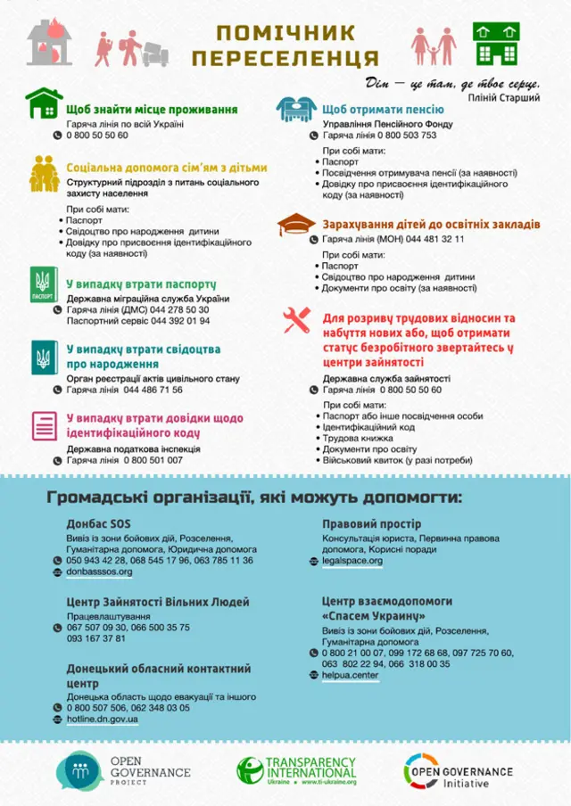 Міжнародна організація Transparency International також привітала новий закон і підготувала інфографіку "Помічник переселенця".