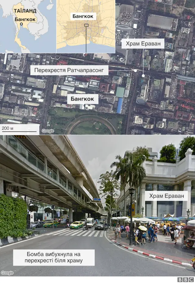 Бомбовий напад стався приблизно о 19:00 за місцевим часом (15:00 за Києвом) біля індуїстського храму Ераван у центральному районі Бангкока.