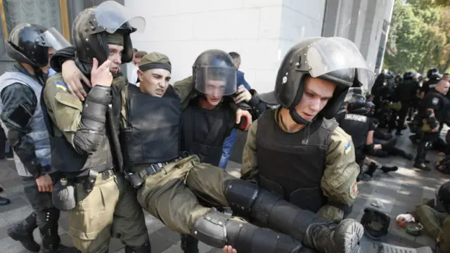 <link type="page"><caption> <bold>Пікет Верховної Ради</bold></caption><url href="http://www.bbc.com/ukrainian/politics/2015/08/150831_protest_rada_report_ko" platform="highweb"/></link>з вимогою не голосувати за <bold><link type="page"><caption> зміни до Конституції</caption><url href="http://www.bbc.com/ukrainian/politics/2015/07/150716_rada_constitution_donbas_vc.shtml" platform="highweb"/></link></bold> закінчився кривавими сутичками з міліцією, в яких один правоохоронець загинув і більше сотні отримали поранення.