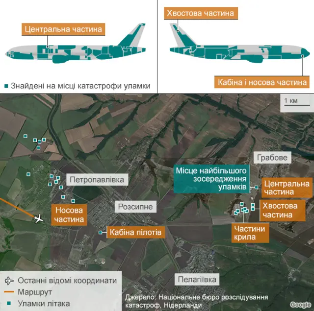 У оприлюдненій у вівторок доповіді комісії Нідерландів йдеться, що в тілах трьох членів екіпажу, а також в уламках літака вдалося знайти вражаючі елементи з нелегованої сталі, характерні для бойової частини ракети системи "Бук" (модель 9N314M).