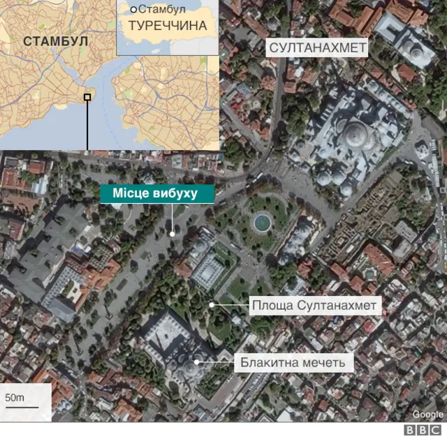 Вони кажуть, що вибух у районі Султанахмет поблизу відомої Блакитної мечеті влаштував бомбіст-смертник із Сирії.