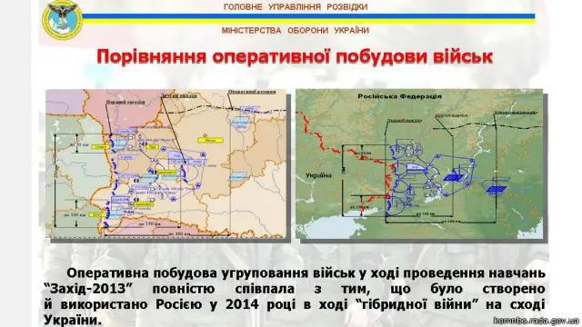 Представник ГУР також згадав і про спільні російсько-білоруські навчання "Захід-2013" у вересні 2013 року на території Білорусі, Західного військового округу Росії та в акваторіях Баренцева і Балтійського морів.