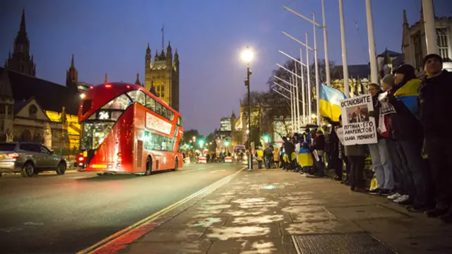 Мирний пікет біля стін парламенту тривав близько двох годин, після чого демонстранти рушили до Вестмінстерського мосту, де утворили живий ланцюг.