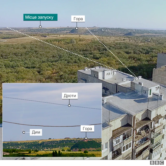 Загалом, ми, налякавши місцевих собак, підняли над цією багатоповерхівкою невеликий дрон - і з'ясували, що з того балкона видно й дроти, і старий терикон, і ймовірне місце запуску ракети вдалині, біля Червоного Жовтня.