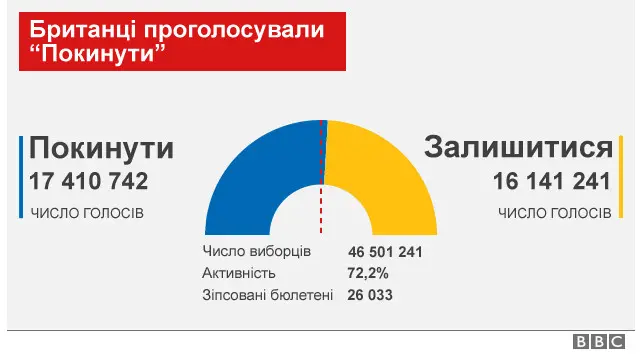 Втім, 52% громадян проголосували за вихід, проти - 48%.