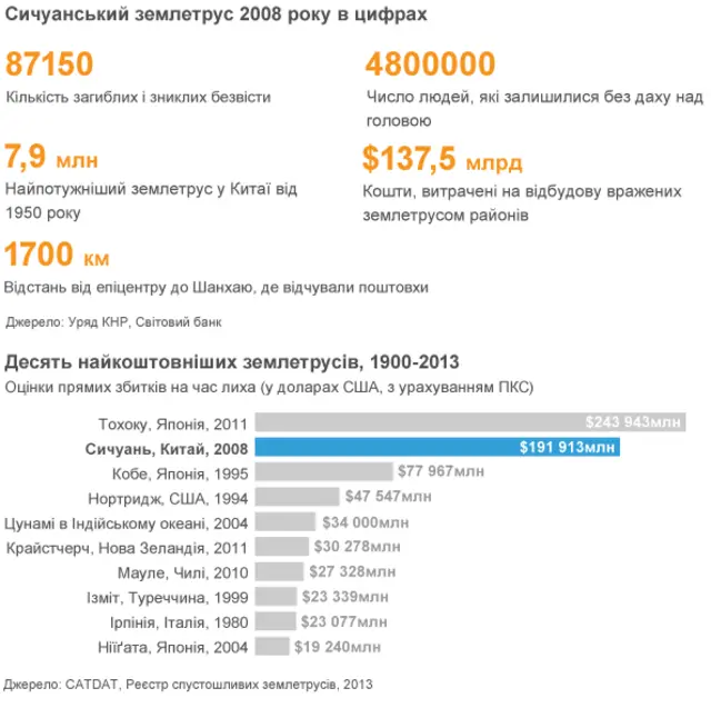 Наведені нижче цифри і графіки пояснюють, наскільки згубним був Сичуанський землетрус.