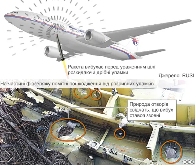 Віктор Мураховський: Я думаю, вельми висока ймовірність. Практично напевно ці вражаючі елементи залишилися у внутрішньому обладнанні літака. Висока ймовірність і того, що хтось із членів екіпажу був уражений такими елементами ще в повітрі і від цього міг загинути. Треба дивитися дані судово-медичної експертизи. У тілах могли залишитися як самі елементи, так і ранові канали. Якщо по-серйозному вести розслідування, то достатньо знайти буквально кілька таких елементів, щоб зробити висновок з дуже високим ступенем достовірності про те, чим саме був уражений літак.