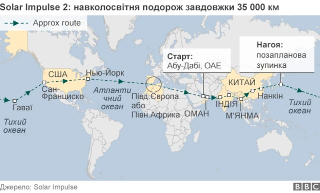 Хід польоту щохвилини контролює диспетчерський центр у Монако. Метеорологи та організатори перельоту постійно оновлюють інформацію, вибираючи для Solar Impulse 2 оптимальний маршрут.