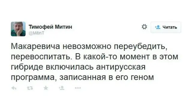 Навесні минулого року Андрій Макаревич звернувся до росіян з проханням не розпалювати війну з українцями, зазначивши, що такої "пропаганди і такої кількості брехні" він не пригадує з "брежнєвських часів".