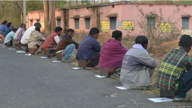 Чоловіки, що підтримують Національну кампанію з захисту прав Адівасі, роздрукували цей акт у кількох примірниках, зняли штани й усілися вздовж узбіччя, щоб спорожнитися на білі аркуші.