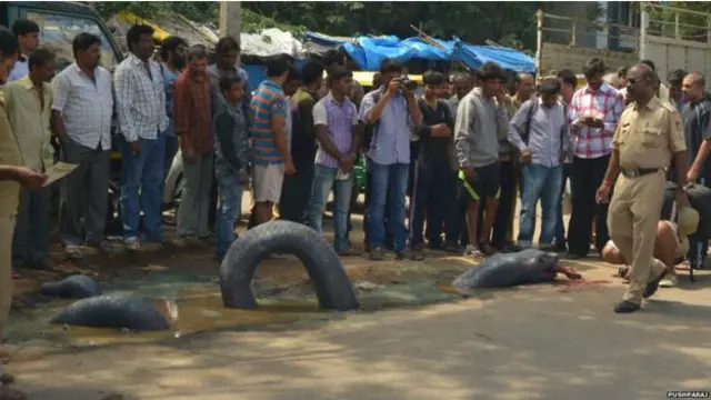 Засмучений тим, що уряд не ремонтує дороги, митець з Банґалора Баадал Нанджандсвамі у червні цього року виготовив 20-кілограмовий муляж крокодила у натуральний розмір і розмістив його у глибокій калюжі на одній з головних доріг міста.