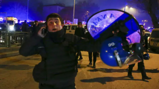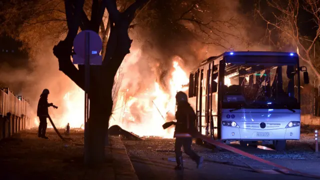 Голова Анкари Мехмет Кіліклар заявив, що підірвалося начинене вибухівкою авто, у той час як поруч проїжджали військові автобуси.