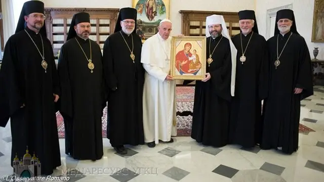Представники Української греко-католицької церкви під час зустрічі у Римі попросили Папу Франциска "допомогти припинити війну і полегшити гуманітарну кризу, спричинену російською агресією проти України".