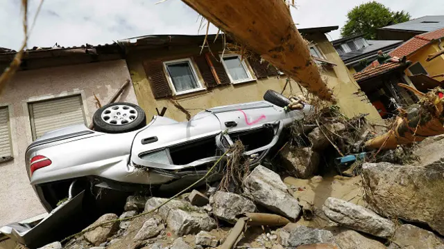 У місті Тріфтерн вийшли з берегів річки і струмки. Стихія розкидала в різних місцях машини, дерева і меблі із затоплених будинків.