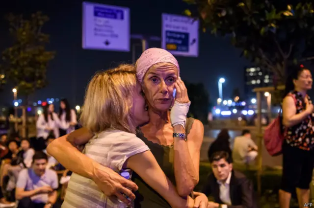 Інцидент виглядав як великий cкоординований напад, повідомляв кореспондент BBC Марк Лоуен із літака, який застряг на злітній смузі у Стамбулі.