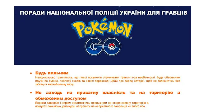 Поліція опублікувала список правил, чого не варто робити, ловлячи покемонів в Україні. Наприклад, грати в темряві, або за кермом.