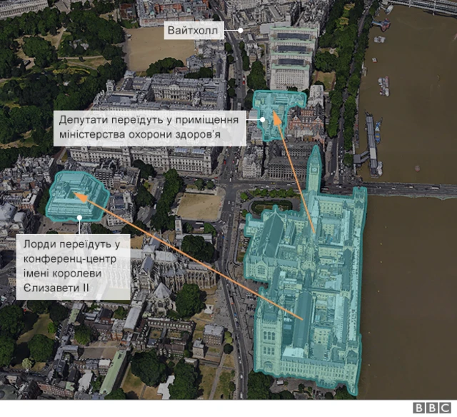 Комітет пропонує перенести Палату громад у приміщення міністерства охорони здоров'я, а Палату лордів - у конференц-центр імені королеви Єлизавети ІІ.