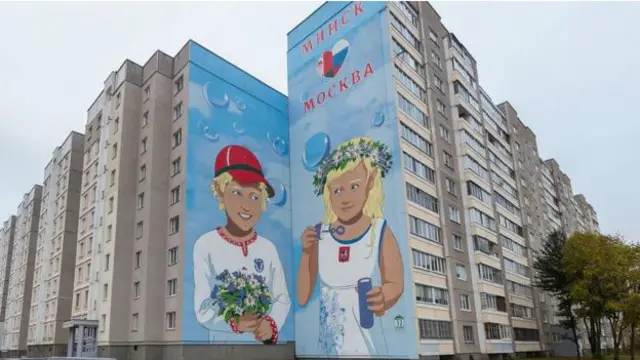 Багатометровий малюнок зображений на стіні однієї з мінських багатоповерхівок.