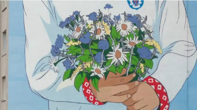 Невідомі художники домалювали колючий дріт на величезному графіті у столиці Білорусі. Зображення мало символізувати дружбу між Мінськом і Москвою.