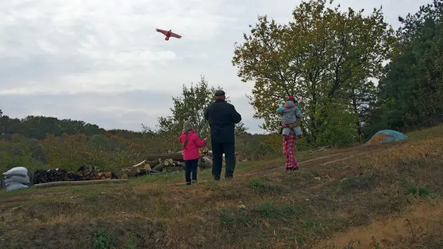 На іншому боці села стоїть старий вітряк без лопастей. Біля нього живе родина Москаленків. На подвір’ї Михайло Москаленко запускає з онучками повітряного змія. Москаленки переїхали у Бучак із міста, оскільки дружина Михайла Лідія Петрівна звідси родом.