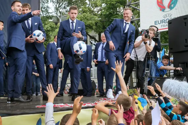 У Києві на Михайлівській площі кілька тисяч українських вболівальників провели національну збірну з футболу для участі у Чемпіонаті Європи-2016.