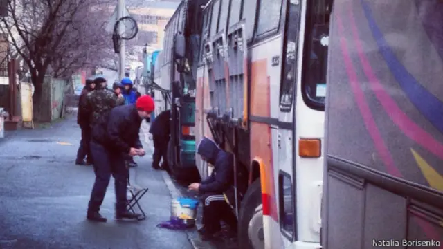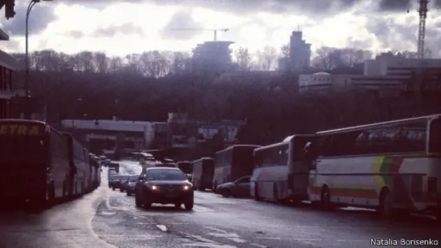 "Сегодня у нас много гостей, очень много, никогда столько не было. Вся Старонаводницкая от Кутузова до бульвара Дружбы народов, заполнена с обеих сторон. Каждый автобус охраняет милиция, по 2-3 человека. Протискиваюсь с ребенком, вокруг мат и семечки".