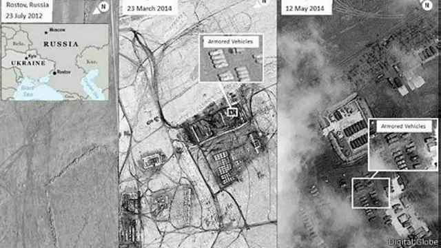 На той серии фотографий были запечатлены шесть различных дислокаций российских войск, на которых были видны боевые вертолеты Ми-8 и Ми-24, различная бронетехника, включая танки, артиллерия и самолеты, в том числе истребители Су-30 и бомбардировщики Су-24.