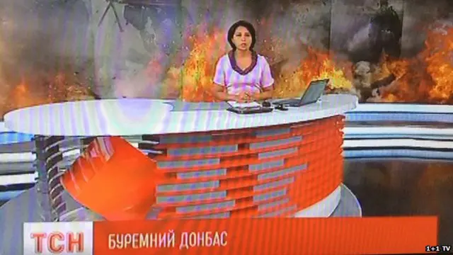 А украинское телевидение отмечает роль Кремля и разоблачает "ложь" российских телеканалов. Следует добавить, что риторика украинских каналов далеко не такая агрессивная, как в России.