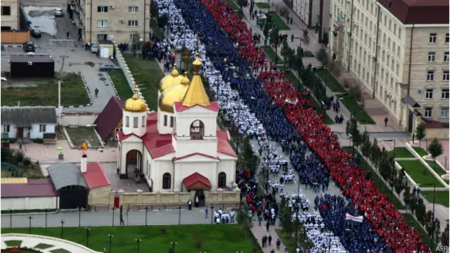 По информации Интерфакса, в шествии приняли участие более 100 тыс. юношей и девушек. Во главе колонны шел глава Чечни Рамзан Кадыров.