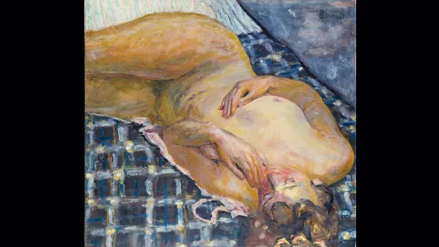 П'єр Боннар "Оголена, яка лежить на біло-блакитному картатому тлі", близько 1909 р.