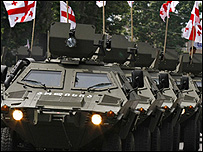 Міністерство закордонних справ Росії неодноразово засуджувало продаж української зброї Грузії, на що Київ вказував на її цілковиту законність. Федеральна служба з військово-технічної співпраці (ФСВТС) Росії сьогодні повідомила, що добивається від України заборони на постачання української зброї і військової техніки до Грузії. Про це повідомив заступник директора цієї служби Костянтин Бірюлін, телепрограмі «Подробності»: "Ми недавно підписали угоду про контроль над переносними зенітно-ракетними комплексами (ПЗРК). Це один з кроків, який дасть змогу контролювати переміщення даної зброї при постачаннях у треті країни, зокрема і до Грузії". За його словами, в Україні є "прагматичні люди, які чітко оцінюють ситуацію і стурбованість російської сторони постачаннями озброєння до Грузії". Кремль також попередив, що може запровадити санкції проти будь-якої іноземної компанії, яка постачатиме Грузії наступальну зброю. Росія гостро скритикувала Сполучені Штати та інші країни за надання зброї та військової підтримки Грузії у конфліктах за сепаратистські регіони в Південній Осетії та Абхазії. | Також на цю тему США тренуватиме грузинський батальйон14 серпня, 2009 | СВІТ Україна і Росія сперечаються через Грузію09 серпня 2009 | ДОКЛАДНО 'Незалежність Південної Осетії безповоротна' 08 серпня, 2009 | СВІТ У Грузії вшановують річницю війни07 серпня, 2009 | СВІТ FT: Вашингтон і Москва - погані друзі24 липня 2009 | Головна сторінка Грузія хоче американських спостерігачів22 липня, 2009 | СВІТ | |||||||||||||||||||||||||||||||||||||||||||||||||||||||||||||||||||||||||||||||