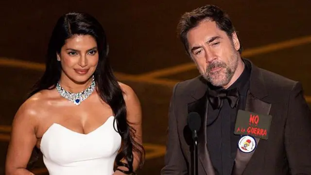 تقریب کے دوران ہال اُس وقت تالیوں سے گونج اُٹھا جب ہسپانوی اداکار ہاویئر بارڈیم نے ’فری فلسطین اور نو وار‘ کی بات کی۔ اس دوران انڈین اداکارہ پریانکا چوپڑا بھی ان کے ہمراہ موجود تھیں۔