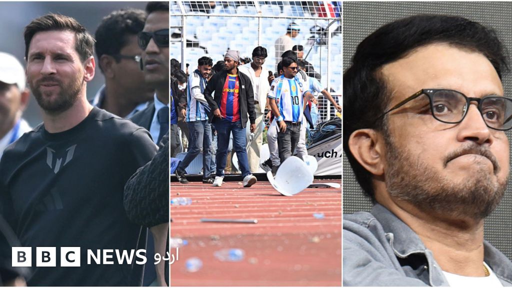 خیال رہے کہ انڈیا کے دورے پر آئے ہوئے لیونل میسی، سنیچر کو کولکتہ کے سالٹ لیک سٹیڈیم آئے تھے، تاہم وہ ’سکیورٹی وجوہات‘ کی بنا پر شیڈول سے پہلے ہی سٹیڈیم سے چلے گئے جس پر مشتعل شائقین نے گراؤنڈ میں بوتلیں اور کرسیاں پھینکیں اور توڑ پھوڑ بھی کی گئی۔