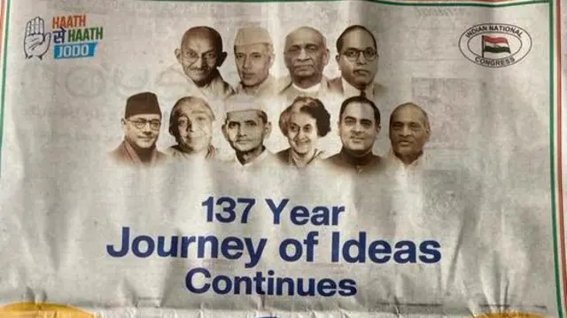 کانگریس نے اتوار کو انڈیا بھر کے معروف اخبارات میں اپنے 85ویں سالانہ اجلاس کا اشتہار دیا جس میں کانگریس کے دس معروف رہنماؤں کی تصویریں تھی۔