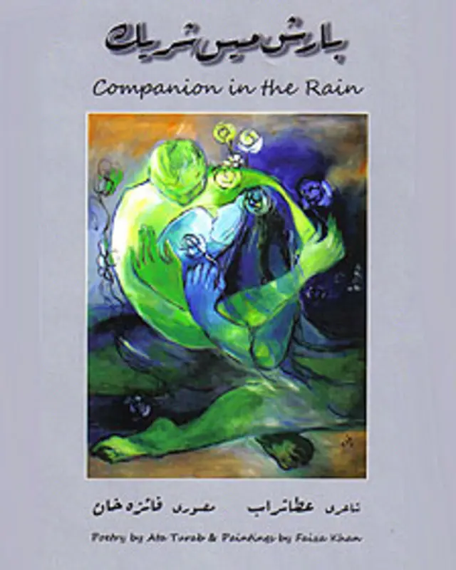 ’بارش میں شریک، جیسے دل رُبا، ذہن میں سوندھے تصور جگانے والے نام کی یہ کتاب جو عطا تراب کی شاعری اور فائزہ خان کی مصوری پر مشتمل ہے، ایک حیرت انگیز کتاب ہے ۔ ۔ ۔ جرات مندانہ اور طاقتور شعری اور صوری تخلیقات جو دل کو چھو لینے والی اور پُر کشش ہیں کسی نادر و نایاب خزانے کی طرح اس کتاب کے اوراق میں چھپی ہیں‘۔