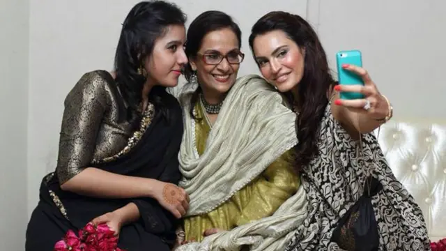 ٹینا اپنی بھانجیوں ریحام اور نادیہ حسین کے ساتھ جو پاکستان کی مشہور ماڈل اور اداکارہ ہیں۔