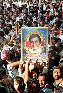 شیدائیوں کی بھاری بھیڑ اور کئی مقامات پر جذباتی مناظر کے پیشِ نظرا نتظامیہ نے پورے بنگلور شہر میں حفاظت کے سخت انتظامات کیئے ہیں۔ بنگلور ، میسور، تمکور، مانڈیہ اور چماراج نگر پوری طرح بند ہے۔ راج کمار کے انتقال کی خبر پھیلتے ہی سنیما گھر، دکانیں اور دفاتر بھی بند کر دیے گئے۔ ڈاکٹر راجکمار کے بیٹے رگھوویندر کے مطابق ان کے والد اپنے بڑے بھائی کی موت کے بعد کئی روز سے ذہنی تناؤ کا شکار تھے۔ فلموں کے ساتھ ساتھ اداکار راج کمار چھ برس قبل اس وقت بھی سرخیوں میں آئے تھے جب خوفناک ڈاکو ویرّپن نے انہیں اغواء کر لیا تھا اور وہ تقریباً 100 دن تک جنگل میں یرغمال بنے رہے۔ راج کمار کی مقبولیت اور ان کے احترام کے پیشِ نظر ریاستی حکومت نے ویرًپن کی تمام مانگوں کو مان لیا اور اس کے بعد ہی راجکمار کو رہائی مل سکی۔ ڈاکٹر راج کمار کو کننڑ فلم انڈسٹری کی عظیم خدمات کے لیئے ملک کے سب سے بڑے اعزاز دادا صاحب پھالکے اوارڈ سے بھی نوازا گیا تھا۔ان کے لواحقین میں میں اہلیہ، دو بیٹے اور ایک بیٹی شامل ہیں۔ | اسی بارے میں اداکار محمد علی کا انتقال ہو گیا19 March, 2006 | فن فنکار ’دی میسج‘ کے پروڈیوسر ہلاک11 November, 2005 | فن فنکار پرویز مہدی انتقال کر گئے29 August, 2005 | فن فنکار این بینکرافٹ انتقال کرگئیں08 June, 2005 | فن فنکار فلمسازمرچنٹ انتقال کر گئے25 May, 2005 | فن فنکار فلم سٹار رنگیلا چل بسے24 May, 2005 | فن فنکار موسیقار امجد بوبی انتقال کر گئے15 April, 2005 | فن فنکار پروین بابی اپنے آخری سفر پر24 January, 2005 | فن فنکار | ||||||||||||||||||||||||||||||||||||||||