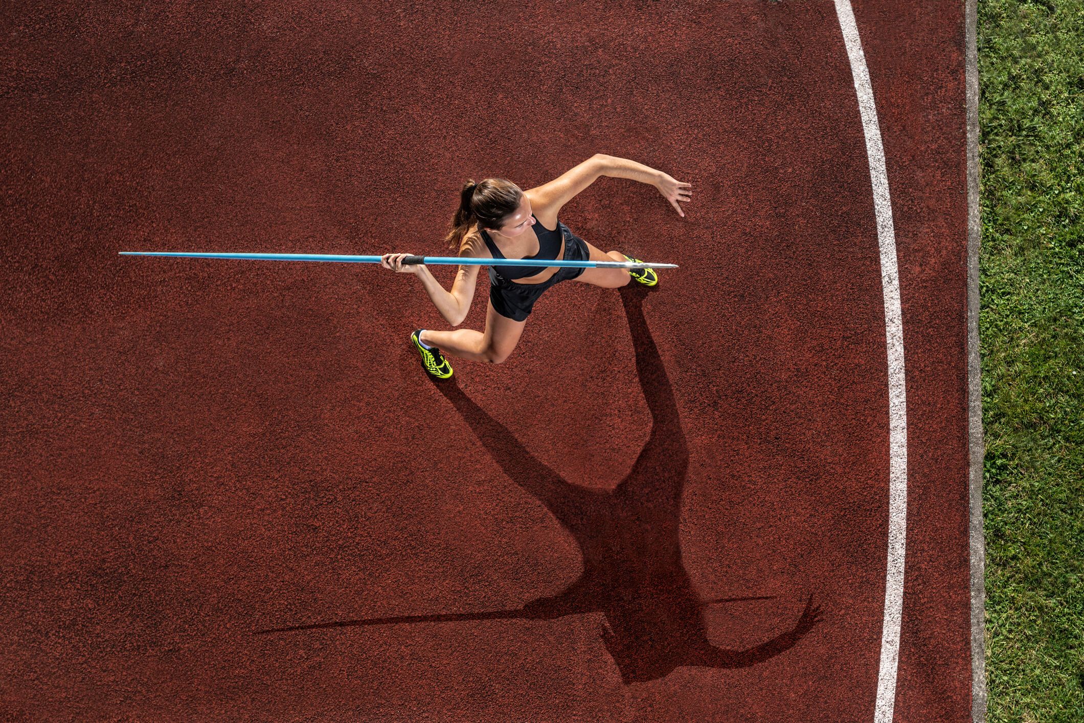 اس عمل میں جیولن کو ہاتھ میں تھام کر رفتار حاصل کرنے کے لیے دوڑ لگانا شامل ہے۔