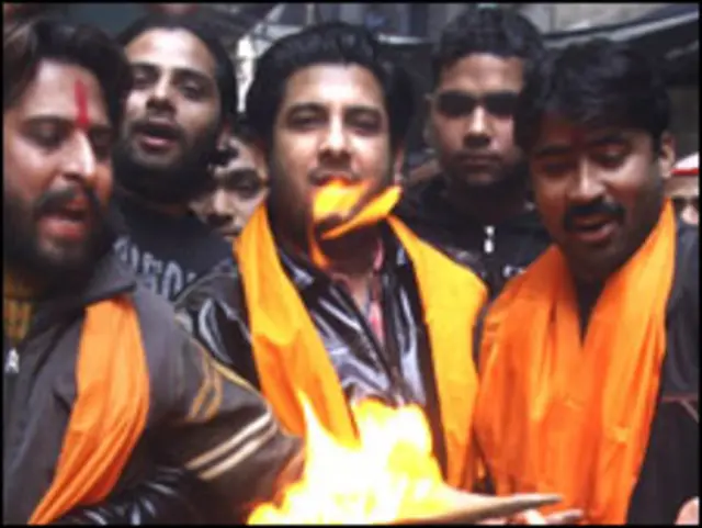 ممبئی کے مشرقی مضافاتی علاقے گھاٹ کوپر، بھانڈوپ اور ملنڈ کے ملٹی پلیکسز اور سنگل سکرین تھیئٹر کے باہر فلم کے پوسٹرز کو شیوسینکوں نے پھاڑا، اس میں آگ لگائی اور شاہ رخ کے خلاف نعرے بازی بھی کی ہے۔مظاہرہ کر رہے شیوسینکوں کا کہنا تھا کہ وہ بالا صاحب کے حکم کی تعمیل کر رہے ہیں۔