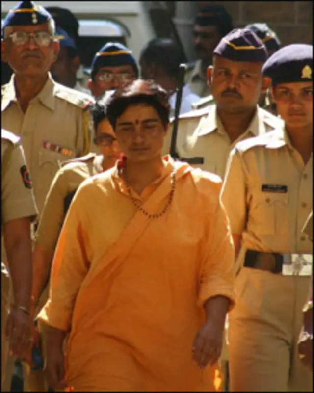 مالیگاؤں میں سن دو ہزار آٹھ میں بم عید سے ایک روز قبل بم دھماکہ ہوا تھا جس میں پولیس نے اب تک بارہ افراد کو گرفتار کیا ہے۔ تمام ملزمان سخت گیر ہندو نظریات کے حامل ہیں۔ سادھوی پر اس دھماکہ کی مبینہ طور پر سازش رچنے کا الزام ہے۔