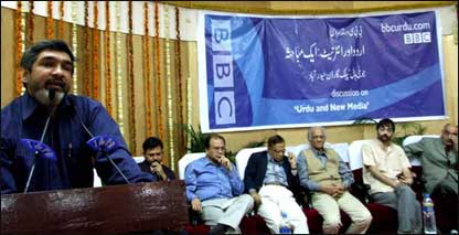 پروگرام شروع ہونے سے پہلے ہی ہال لوگوں سے بھر گیا۔ حاضرین میں بڑی تعداد میں اردو دان، طالب علم شامل تھے۔ ڈاکٹر راج شیکھر ریڈی نے اپنے افتتاحی خطاب میں کہا کہ ان کی حکومت اردو کے فروغ کے لیے پوری کوشش کر رہی ہے۔ انہوں نے یہ بھی کہا کہ ان کی حکومت اردو بولنے والوں میں کمپیوٹر لٹریسی بڑھانے کے لیے ہر ممکن کوشش کر رہی ہے اور یہ ان کی پالیسیوں کی لِسٹ میں سر فہرست ہے۔ پروفیسر انور معظم نے اپنے خطاب میں کہا کہ اردو کو جدید دور سے جوڑنا نہایت ہی ضروری ہو گیا ہے۔ انہوں نے بی بی سی اردو ڈاٹ کام کی ویب سائٹ پر آپ کی آواز کا خاص طور پر ذکر کرتے ہوا کہا کہ، ’انٹرنیٹ پر موجود نیوز ویب سائٹس صرف خبریں دینے کے حوالے سے ہی اہم نہیں بلکہ وہ لوگوں کو ایک دوسرے سے جوڑتی ہیں اور قریب لاتی ہیں۔‘ رہنمائے دکن کے سینئیر صحافی حسن فرخ نے اپنے خطاب میں اردو ویب سائٹس آئی ٹی ایکسپرٹ پروفیسر رحمت یوسف زئی اس وقت اردو کو ہندی میں اور ہندی کو اردو میں تبدیل کرنے کے لیے سافٹ وئیر پر کام کر رہے ہیں۔ دیگر مقررین نے اردو زبان کی موجودہ صورت حال سے لے کر انٹرنیٹ کے دور میں اردو کو درپیش مسائل پر اپنے خیالات کا اظہار کیا۔ کئی مقررین کے خیال میں فونٹ کے حوالے سے اگر انٹرنیٹ پر نستالیق رسم الخط میں پریشانی ہے تو نسخ استعمال کرنے میں کوئی حرج نہیں۔ بعد میں سوال جواب کا ایک سلسلہ بھی ہوا جس کے دوران پروگرام میں حصہ لینے والوں نے بہت دلچسپی کے ساتھ بی بی سی اردو ڈاٹ کام اور انٹرنیٹ کے بارے میں کئی مرتب سوالات پوچھے جن کے جوابات بی بی سی اردو ڈاٹ کام کے مظہر زیدی نے دیے۔ بی بی سی اردو ڈاٹ کی انڈیا آن لائن کیمپین کا اگلا پروگرام بارہ فروری کو ممبئی میں ہوگا۔ | اسی بارے میں میرا انڈیا: ’میں ریڈیو پر جوکی نہیں ہوں؟‘01 February, 2006 | Blog دلی: ’اردو اور نیو میڈیا‘ سیمینار01 February, 2006 | انڈیا حیدرآباد: انڈیا آن لائن کی تیاری مکمل04 February, 2006 | انڈیا ’بولے تو‘ یہ حیدرآباد ہے04 February, 2006 | انڈیا | ||||||||||||||||||||||||||||||||||||||||