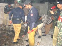 یہ دھماکہ ایک ایسے وقت ہوا جب وزیر اعظم شوکت عزیز بھی شام کو پشاور کے دورے پر پہنچے۔ سکیورٹی کی وجہ سے ان کے دورے اور مصروفیات کو خفیہ رکھا گیا تھا۔ دھماکے کے فورا بعد پولیس اور فوج نے علاقے کو گھیرے میں لے لیا اور صحافیوں کو دھکے دے کر دور کیا۔ | اسی بارے میں گورنر سرحد پر راکٹ حملہ07 November, 2006 | پاکستان پشاور ’خودکش‘ حملہ، ایک ہلاک17 November, 2006 | پاکستان کراچی: امام بارگاہ سے بم برآمد27 November, 2006 | پاکستان کوئٹہ تفتان ریلوے پٹڑی پر دھماکے29 November, 2006 | پاکستان | ||||||||||||||||||||||||||||||||||||||||