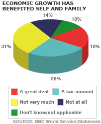 کچھ پہلو ایسے بھی ہیں جن پر سروے میں شامل افراد کی رائے زیادہ مثبت نہیں۔ مثلاً سینتالیس فیصد افراد کا ماننا ہے کہ’ کرپشن ایک ایسی حقیقت ہے جسے آج کی دنیا میں کاروبار یا کام کا حصہ تسلیم کرلینا چاہیے‘۔ تاہم سروے میں شامل نوجوان بزرگوں کے مقابلے میں کرپشن کے زیادہ مخالف نظر آئے۔ اگرچہ بھارتی شہری اپنے ملک کو ایک عالمی اقتصادی طاقت کے روپ میں دیکھنا چاہتے ہیں تاہم انہیں یقین نہیں کہ وہ حالیہ اقتصادی ترقی کے ثمرات سے بہرہ مند ہوں گے۔ اس سوال پر کہ کیا گزشتہ دس برس میں بھارت کی اقتصادی ترقی ان کے لیے فائدہ مند ثابت ہوئی، تو پینتالیس فیصد کی رائے مثبت اور پینتالیس فیصد کی رائے منفی تھی۔ پول میں شامل نصف افراد کا خیال ہے کہ بھارت میں لوگ اپنے مذہب کو سنجیدگی سے نہیں لیتے۔ جبکہ چالیس فیصد کے نزدیک نوجوان نسل اپنی روایات اور ورثے سے تعلق توڑ چکی ہے۔ اس پول کے لیے بھارت میں 1616 افراد کا پانچ سے پندرہ دسمبر 2006 کے دوران انٹرویو کیا گیا اور بی بی سی ورلڈ سروس کے لیے یہ پول گلوب سکین نامی کمپنی نے کیا۔