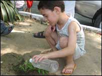 یہ لوگ فلسطین کے باسی ہیں جو عراق میں بس گئے تھے۔ جنگ کے سبب عراق سے وہ جعلی پاسپورٹ کے ذریعے بھارت تو پہنچ گئے لیکن دلی میں ان کی روزگار تلاش کرنے کی ان کی تمام کوششیں ناکام ثابت ہوئي ہیں۔ انتصار مصطفٰی کا پانچ سالہ بیٹا ان سب باتوں سے بےخبر فٹ پاتھ پر نیم کی ایک ہری ٹہنی لگا کر اس پر پانی ڈال رہا ہے۔ اس کی سات سالہ بہن زینب باغبانی کے کام میں اس کی مدد کر رہی ہیں لیکن ان کی ماں پریشان ہیں۔’حالات بہت خراب ہیں، بچوں کے سر پر چھت نہيں ہے، بس اللہ پر بھروسہ ہے جنگ سے قبل عراق میں ہماری زندگی بہتر تھی لیکن امریکہ کے آنے کے بعد زندگی اجیرن ہوگئی ہے۔ جنگ سے زندگی برباد ہوگئی ہے۔ ہوسکے تو میری یہ بات امریکہ کو پہنچادیں۔‘