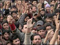 پولیس نے اس موقعہ پر اشک آور گیس کے گولے داغے اور لاٹھی چارج کیا جسکے نتیجہ میں متعدد افراد زخمی ہوگئے۔ اس دوران مظاہرین نے رات بھر لاش کو سڑک پر رکھا اور احتجاج جاری رکھا ۔ سنیچر کی صبح حالات کی کشیدگی کو دیکھ کر ضلع پولیس نے فوج کی ٹیریٹورئل آرمی سے وابستہ مقامی نوجوان طارق کو رشید کے قتل میں ملوث قرار دے کر انہیں گرفتار کرلیا اور مقامی فوجی یونٹ کے خلاف قتل کا معاملہ درج کرلیا۔ کپواڑہ کے معروف سماجی کارکن جاوید احمد میر نے بی بی سی کوبتایا کہ چوکی بل اور راوتھ پورہ علاقے میں عام لوگوں اور فوج کے درمیان مختلف سطحوں پر تصادم ہے۔ اس کی وجہ بیان کرتے ہوئے مسٹر میر کہتے ہیں کہ چوکی بل سے مارسری جنگلات تک جنگی سازوسامان ڈھونے کے لئے فوجی مقامی نوجوانوں اور سکول کے بچوں کو بیگار پر لے جاتے ہیں، جس پر اساتذہ اکثر اعتراض کرتے ہیں۔ رشید کے قتل سے متعلق ان کا کہنا ہے کہ ’جس سکول میں وہ تعینا ت تھا وہ عام بستی سے تین کلومیٹر کے فاصلے پر ہے اور روزانہ اساتذہ اور استانیوں کو یہ فاصلہ پیدل طےکرنا پڑتا ہے۔ راستے میں کئی مقامات پر فوجی اہلکاروں کے ساتھ ان کا سابقہ پڑتا ہے۔ اس صورتحال سے متعلق حکومت ہی کچھ کرسکتی ہے۔‘ جمعہ کے روز راوتھ پورہ اور ملحقہ دیہات میں کاروباری اور تعلیمی سرگرمیاں معطل رہیں تاہم سنیچر کو پورے ضلع میں عام زندگی ٹھپ ہوگئی کیونکہ مقامی وکلا نے ضلع میں احتجاجی ہڑتال کا اعلان کردیا۔ ہندنواز اور ہند مخالف دونوں سیاسی گروپوں نے واقعہ کی مذمت کی ہے۔ |