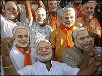 مودی کا بڑھتا ہوا سیاسی قد گجرات کے اسمبلی انتخابات قومی اہمیت اختیار کر گئے ہیں ۔اخبارات اور ٹیلی ویژن پر ہر جگہ اس پہلو پر بحث و مباحثے ہو رہے ہیں کہ گجرات اسمبلی کے انتخابات قومی سیاست پر کس طرح اثر انداز ہونگے۔ بیشتر مبصرین کا خیال ہے کہ اگر مودی کی شکست ہوئی تو یہ صرف مودی کے لیے ہی نہیں بی جے پی کی قومی سیاست کے لیے بھی ایک بڑا دھچکا ثابت ہوگی ۔ لیکن اگر مودی دوبارہ جیت گئے تو اس سے نہ صرف مودی کی پوزیشن مستحکم ہوگی بلکہ آنے والے دنوں میں وہ قومی سیاست میں بھی اہم کردار ادا کر سکتے ہیں ۔ تجزیہ کاروں کا خیال ہے کہ مودی کے بڑھتے ہوئے سیاسی قد سے خود بی جے پی کے اندر بھی بحث و مباحثے ہو رہے ہیں ۔ پارلیمانی انتخابات سے ڈیڑھ برس قبل گزشتہ ہفتے ایل کے اڈوانی کو اچانک وزیر اعظم کے عہدے کا امیدوار بنانے کااعلان کیے جانے کو بھی بی جے پی کی قومی قیادت میں اسی گبھراہٹ سے تعبیر کیا جا رہا ہے کہ اگر گجرات میں مودی منتخب ہوئے تو بی جے پی کے اندر کئی حلقوں کی جانب سے ان پر دلی کی سیاست میں سرگرم ہونے کے لیے دباؤ بڑھے گا۔ چینیوں کا جواب نہیں اس بار گجرات کے انتخابات میں ایک خاص بات یہ دیکھنے کو ملی کہ پوری ریاست میں ہر جگہ وزیراعلیٰ نریندر مودی کا ’ماسک‘ یعنی مکھوٹا فروخت ہوتا ہوا نظر آیا ۔مختلف انداز میں مودی کے ماسک لاکھوں کی تعداد میں ان کے حامیوں میں تقسیم کیے گیے تھے۔ مودی کے انتخابی جلسوں میں ہزاروں لوگ مودی کا مکھوٹا پہنے ہوۓ نظر آتے تھے ۔