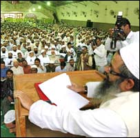 ہندوستان کی جنوبی ریاست آندھرا پردیش کے حیدارآباد شہر ميں ملک کی بااثر تنظیم جمیعت علمائے ہند کا دو روزہ اجلاس جاری ہے۔ اجلاس کے پہلے دن منظور کی گئی قرار دار میں دہشتگردی کی کھل کر مذمت کی گئی وہیں دوسرے روز اجلاس کے خاتمے سے قبل دلت مسلم اتحاد، وقف کی ملکیت کے بہتر استعمال، فرقہ وارانہ فسادات کو روکنے کے لیے مناسب قوانین اور مسلمانوں کے لیے رزرویشن جیسے اہم موضوعات پر کھل کر بحث و مباحثہ کیا جائے گا۔ اس بحث میں آندھر پردیش کے وزير اعلی وائی ایس آر ریڈی ، سماجی کارکن سوامی اگنی ویش سمیت ملک کے سرکردہ دانشور شرکت کر رہے ہیں۔ اجلاس کے دوران سچّر کمیٹی اور شری رنگاناتھن رپورٹ کو جلد سے جلد نافذ کرنے کا بھی مطالبہ کیا گیا ہے۔ سنيچر کو انتیسویں اجلاس کا افتتاح کرتے ہوئے جمیعت علمائے ہند کے سینئر رہنما اور رکن پارلیمان مولانہ محمود مدنی نے کہا ’جمیعت دہشتگردی کی ہر قسم کی مخالفت کرتی ہے اور یہ چاہتی ہے کہ حکومت ان عناصر سے سختی سےنمٹے جو ملک میں تشدد اور دہشتگردی پھیلا رہے ہیں۔‘ جب ان سے مالیگاؤں دھماکے کے سلسلے ميں بعض ہندوؤں کی گرفتاری کے سلسلے میں سوال پوچھا گیا تو انہوں نے شدت پسندی کو کسی مذہب کے ساتھ جوڑنے کی سختی سے مذمت کرتے ہوئے کہا ’پچھلے کئی برس سے جب دہشتگردی کو مسلمانوں اور اسلام سے جوڑا جاتا تھا ہم اس کی مذمت کرتے تھے اور اب جب یہی کوشش کسی اور برادری یا مذہب کے ساتھ کی جا رہی ہو تو ہم اسے کیسے صحیح ٹھہرا سکتے ہیں۔‘ ہندوؤں کی گرفتاری اور ہندو شدت پسند کے بارے میں ان کا کہنا تھا کہ ’جب اسلام کو بدنام کرنے والے غلط تھے تو جو لوگ دوسروں کے بارے میں ایسی بات کر رہے ہیں وہ کیسے صحیح ہو سکتے ہیں۔‘ پہلے روز کے اجلاس میں دارالعلوم دیوبند کی جانب سے دہشتگردی کے خلاف دیے گئے فتوی کو صحیح ٹھہراتے ہوئے اجلاس میں یہ بھی کہا گیا ’اب تک دیوبند کے فتوی پر صرف چار مفتیوں کے دستخط تھے لیکن یہاں پورے ملک سے آئے تقریبا چھ ہزار مفتیوں نے اس پر اپنے دستخط کر دیے ہیں اور اب اس میں مزید لوگ شامل ہوں گے اور یہ پیغام پھیلانے میں مدد فراہم کريں گے اسلام میں دہشتگردی کی کوئی جگہ نہیں ہے، اسلام کے نام پر دہشتگردی کو پھیلایا نہیں جا سکتا اور نہ ہی قرآن اس کی اجازت دے دیتا ہے۔‘ | اسی بارے میں ’مسلمانوں کونشانہ مت بناؤ‘ 14 October, 2008 | انڈیا دہشتگردی کے خلاف فتویٰ31 May, 2008 | انڈیا جے پور دھماکے: حرکت الجہاد پر شک 14 May, 2008 | انڈیا ’ہمیں بھی پوٹا لگا کر جیل میں بند کر دیں‘12 December, 2007 | انڈیا اکثریت نقل مکانی کرناچاہتی ہے 04 December, 2006 | انڈیا وہ ہيں کہاں؟28 October, 2006 | انڈیا ’اب مشرف بھی کارکردگی دکھائیں‘24 September, 2006 | انڈیا ’اب مشرف بھی کارکردگی دکھائیں‘24 September, 2006 | انڈیا | ||||||||||||||||||||||||||||||||||||||||